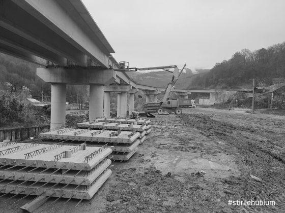 - La pasajul peste calea ferata, cu o lungime de 380 de metri, se desfasoara lucrari la elevatiile pilelor, montarea grinzilor fiind deja finalizata pe primele 5 deschideri ale pasajului, precum si montarea antretoazelor si predalelor prefabricate.
