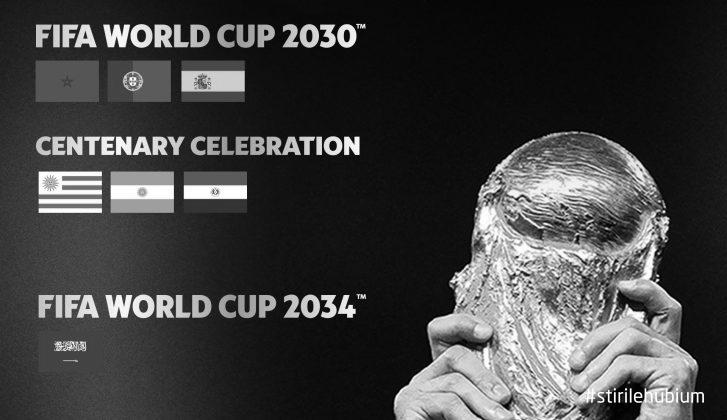 Decizia de a atribui Spaniei, Portugaliei si Marocului organizarea Campionatului Mondial de Fotbal din 2030 si Arabiei Saudite organizarea celei din 2034 a fost anuntata de presedintele FIFA, Gianni Infantino, in cadrul unui Congres extraordinar virtual. Ambele competitii au avut cate o singura oferta si au fost confirmate cu entuziasm.