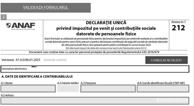 Pentru completarea declaratiei unice, se vor urma instructiunile din formularul inteligent publicat de ANAF conform Ordinului nr. 7015 din 2024.